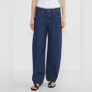 Aritzia Denim Forum Kai Relaxed Mid Rise Barrel Dark Jeans