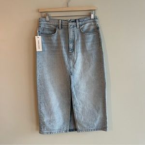 Inspired by the alluring attitude of the '90s, The Halle is Denim Forum's streamlined midi skirt, complete with a front slit. Premium 100% organic cotton denim from Italy only gets better with wear — good thing you'll wear this a lot.