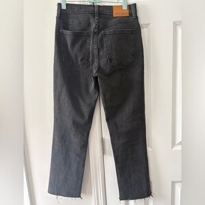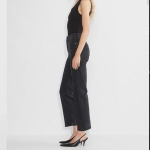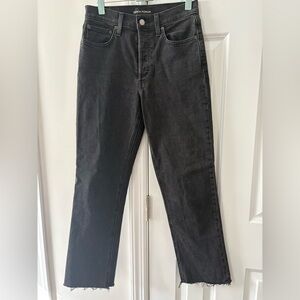 Aritzia Denim Forum The Arlo Hi-Rise Straight Jean size 26, faded black color with raw hem. Button fly. Very Good preowned condition.