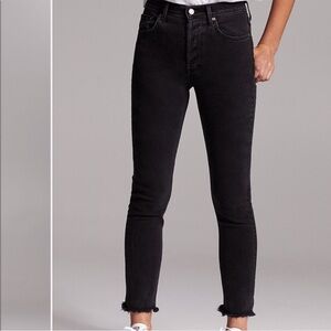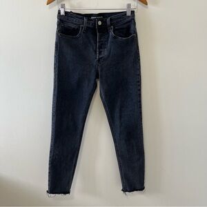 Aritzia Denim Forum The Yoko High Rise Slim Faded Black Raw Hem Size 26