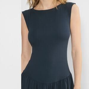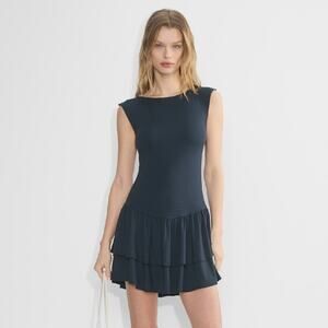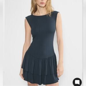 Aritzia Drop Waist Mini Dress Wilfred GoodLux Bloomsbury Dress Night Navy Large