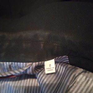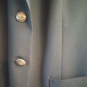 Excellent used condition wool blazer, the exterior is almost pristine and very smooth. I wore a slight amount of perfume once around the neck area and it discolored the collar as shown. This has been cleaned and poses no problem for future wear and is not visible. Priced to sell because I am moving. True to size. I am 5'3, 105 to 110 lb, it fits well. Thank you!