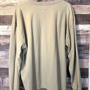 Aritzia Golden TNA Lennox Long Sleeve L Oversized Olive Tan Neutral V-Neck Shirt