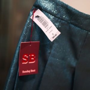 Aritzia Green Glitter Pleated Skirt Size 2 NWT