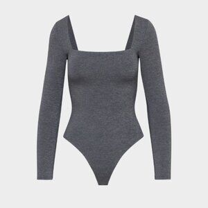 Aritzia Heather Charcoal Contour Squareneck Bodysuit