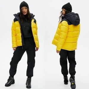 Aritzia Jacket The Super Puff Goose Down Warm Winter Hood Black Yellow XS GUC