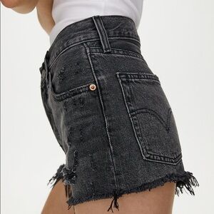 Aritzia Levi’s Premium 501 Black Distressed Shorts