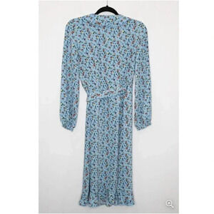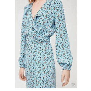 Aritzia Little Moon Elm Blue Floral Wrap Midi Dress Cottagecore Prairie Ruffles