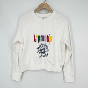 Aritzia Little Moon Posey Sweatshirt L’amour Graphic Print Crewneck Terry White