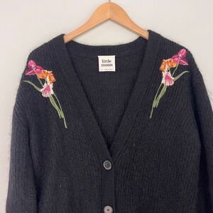 Little Moon Aritzia Black Wool Mohair Floral Applique Cardigan Sweater