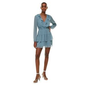 It's cut from drapey semi-sheer fabric with an airy feel and slight crinkle texture