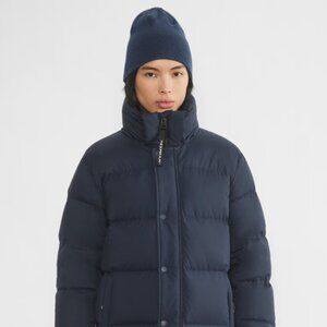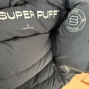Navy Long Superpuff: Worn for less than a season and in super good condition - Size small. Fits TTS. Details: