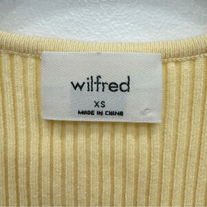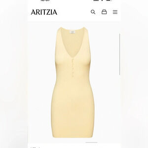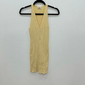 Aritzia Midi Wilfred Butter Yellow Ribbed V neck button detail midi dress Sz XS