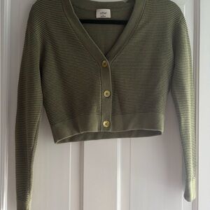 Aritzia Olive Green V-Neck Button-Up Sweater