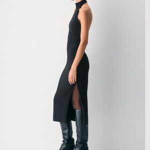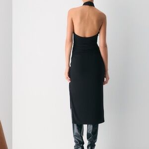 This is a halterneck maxi dress with an open back and long side slit. It’s made with Smooth Matter™ — drapey stretch jersey with a luxe, sleek feel and soft sheen.