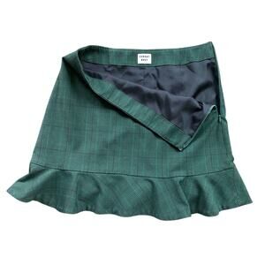 Aritzia Sunday Best Astala Mini Skirt Sz 8 Green Black Plaid Pattern School Girl
