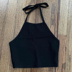 Size XS Sunday Best Aubrey halter top in black (white model photos are from website to show the fit). Great condition, worn a few times, no flaws. Adjustable self-tie neckline and stretchy, lightly compressive fabric, cropped length. Runs true to size for Aritzia. Great summer staple.