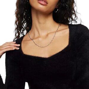 Sunday Best Black Elsie Sweetheart Neck Long Sleeve Fuzzy Sweater size XL NWT