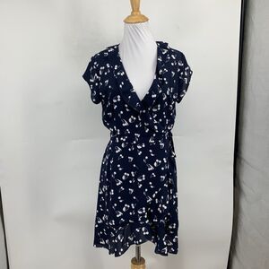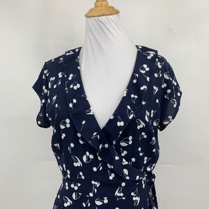 Aritzia Sunday Best Dress Womens 2 Navy White Cherry True Wrap V Neck Cap Sleeve