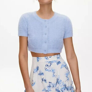 Aritzia Sunday Best Fuzzy Soft Cropped Effie Cardigan Short Sleeve White Small
