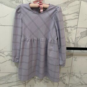 This is a crew-neck babydoll dress with inseam pockets, puff sleeves and a keyhole cutout at the back. It’s made from cozy flannel twill made with recycled materials and LENZING™ ECOVERO™ Viscose — wood-based fibres sourced from responsibly managed forests and produced through an environmentally low-impact process.