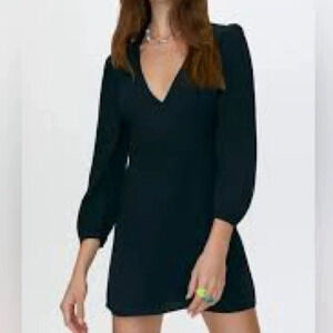 Aritzia Sunday Best Grayson Long Sleeve V Neck Mini Dress in Noir - NEW - Size 8. New with tags. This is a long-sleeve mini dress with a V neckline. It's made with drapey crepe fabric with a subtle pebbled texture.