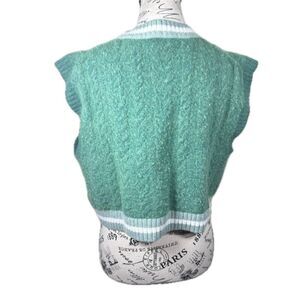 Aritzia Sunday Best Green Wool Blend Knit Sweater Vest Cropped Size XL Preppy