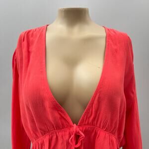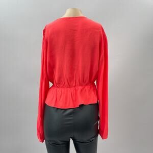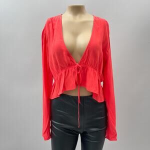 Aritzia Sunday Best Kimberly Cropped Tie Front Blouse Red Women's Size Medium