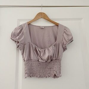 Aritzia Sunday Best Luka Smocked Crop Top Lavender