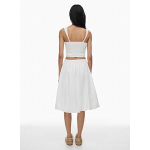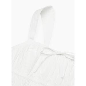 This is a lined squareneck tiered blouse with adjustable straps, a centre tie detail and a peplum hem. It's cut from lightweight 100% cotton poplin with a smooth, crisp feel.