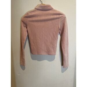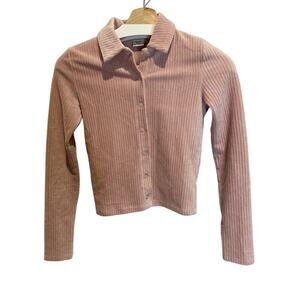 Aritzia Sunday Best Ribbed Button Up, Pink, Cropped, Womens 2XS