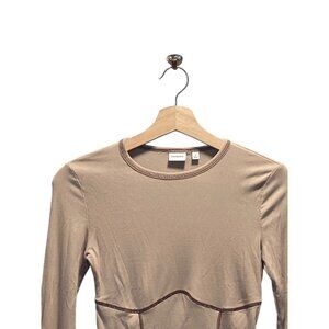 Aritzia Sunday Best Ribbed Corset Stitch Crop Top Beige Size S Neutral Retro