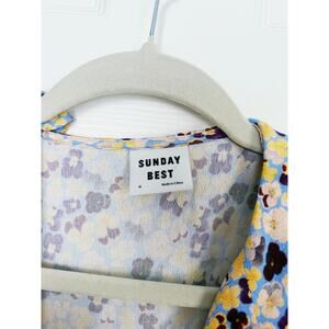This is an Aritzia Sunday Best Ruffle Wrap Dress in a beautiful pansy print buttercup color. It is a size medium and has a retail price of $148.