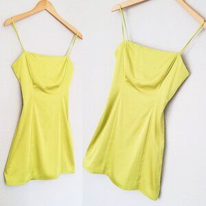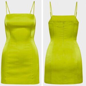Aritzia Sunday Best Shimmer Satin Dress Size 2 Pear Green Neon Chartreuse $98