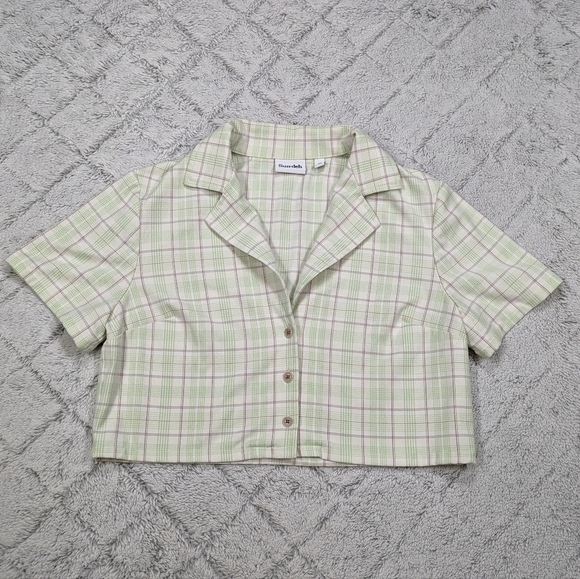 Aritzia Sunday Best Shirt Women's M Green Plaid Tuesday Crop Button Notch Collar