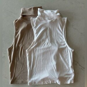 Aritzia Sunday Best Sleeveless Cropped Turtleneck Tops - Cream and White Bundle