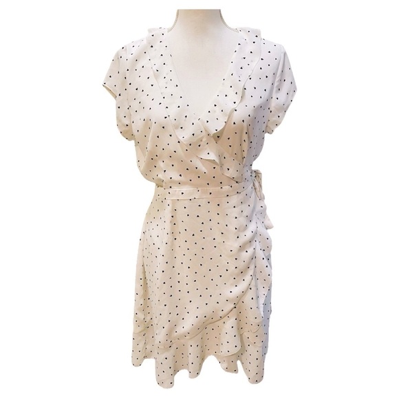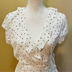 Aritzia Sunday Best White and Black Heart Wrap Dress Size 8