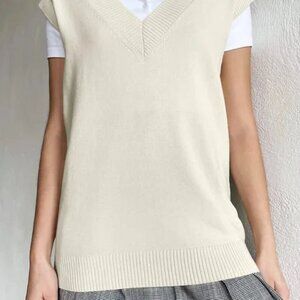 Oversized knit sweater vest. This is a V-neck sweater vest with ribbed trim. It's jersey-knit with an extra-fine merino wool-cotton blend that's lightweight super soft against your skin.