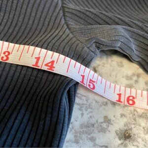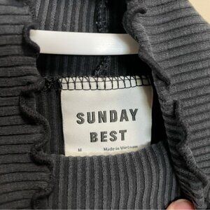 This stylish black ribbed top from Aritzia’s Sunday Best features a fitted design with long sleeves and a trendy cropped cut. Perfect for adding a touch of elegance to any outfit, its solid color and sleek silhouette make it a versatile wardrobe staple.