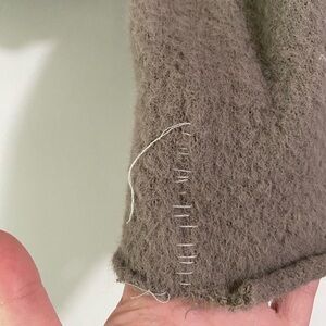 Really soft and fuzzy, has some light piling and a flaw on the bottom of one sleeve (last photo) that is reflected in the price