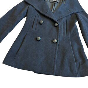Black double-breasted button down pea coat in super soft wool cashmere blend fabric