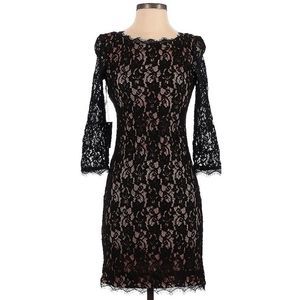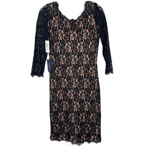 Aritzia T. Babaton 3/4 Sleeve Black Lace with Nude Liner Sheath Dress. Size 2