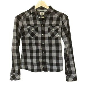Aritzia TNA Black Gingham Check Classic Fit Flannel Shirt Womens XS