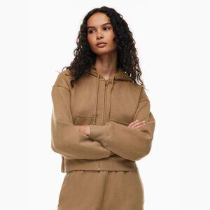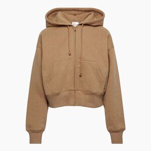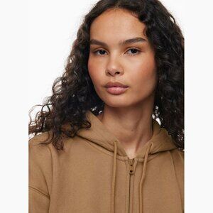 Aritzia TNA Brown Cozy Sweatfleece Boyfriend Boxy Zip Hoodie Size Large.