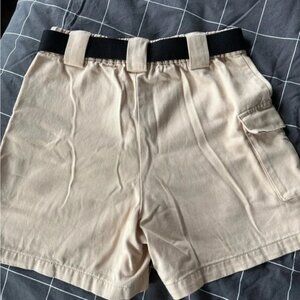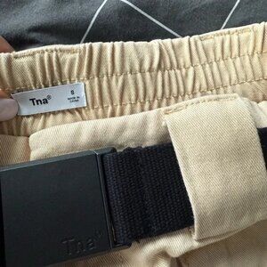 Details: These TNA tan cargo shorts offer a contemporary twist on a classic style with their high-waisted fit and modern design. Crafted from durable materials, they provide a structured and tailored appearance, making them perfect for both casual and polished looks.