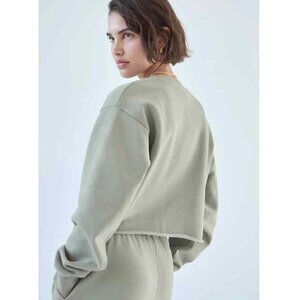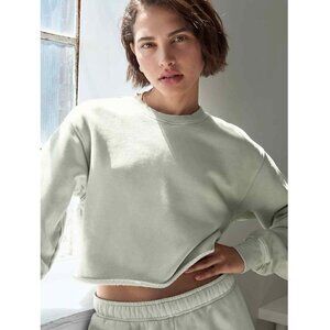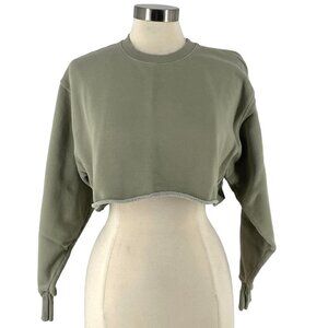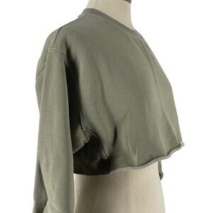 Aritzia TNA Cozy Fleece Boyfriend Cropped Pullover Sweatshirt Green Size 1/XS