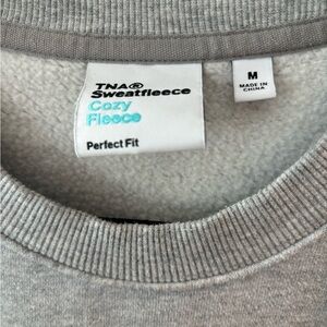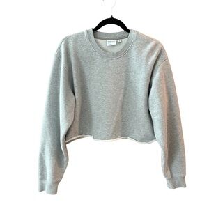 Aritzia TNA Cozy Fleece Perfect Fit Cropped Crewneck Sweatshirt. Grey Medium.