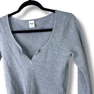 Aritzia TNA Gray V-Neck HomeStretch Rib Henley Thermal Knit Long Sleeve Crop Top
