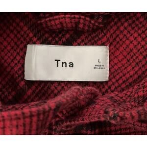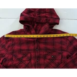 Aritzia TNA Hoodie Flannel Shirt Women L Red Plaid Button Up Lightweight