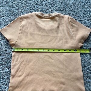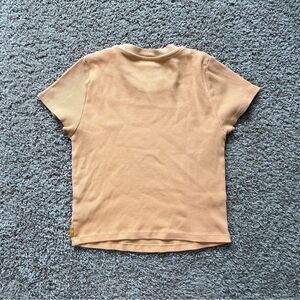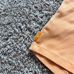 Aritzia TNA Ribbed Baby Tee in beautiful pastel yet vibrant melon orange color. Cropped. Size medium. Fits a size small pretty well too! New without tags and gorgeous. So comfy and cute with high rise jeans or leggings.